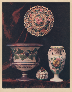 The craftsmen of the Kyiv-Mezhyhirya faience factory created tea and tableware with unique relief ornamentation, decorative Easter eggs, vases, plates, and sculptural items. The success of the factory and the quality of its products were highly recognized worldwide. The factory also trained entire dynasties of hereditary craftsmen and operated a school for modeling and painting.